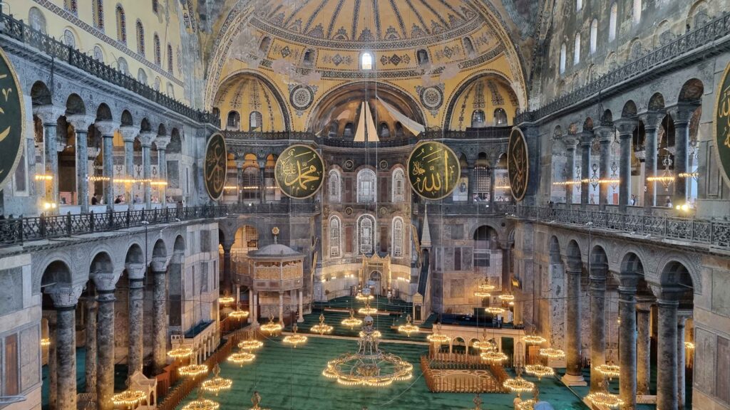 Istanbul’s iconic landmark showcasing Byzantine and Ottoman history. Tourists can no longer visit the lower level after 2020 as it is now a functioning mosque.